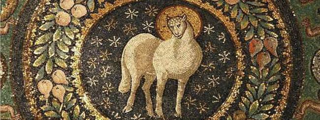 Imagen: "Cordero místico", detalle del mosaico de la basílica de San Vitale en Ravena. (Wikipedia: autor: M.N Boyat / F. Lefebvre)